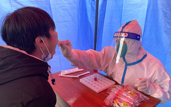 医学部、校医务室和附属医院的老师们担当起了为全体在校学生、驻校老师、家属区居民做核酸检测的重任。学生志愿者们维持秩序,一切井然有序。