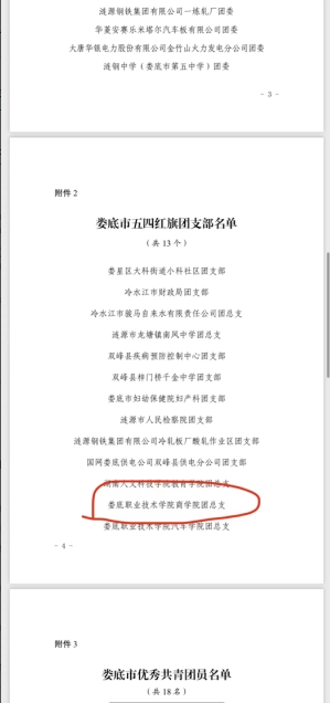 4月27日,共青团娄底市委下发了《关于表彰娄底市五四红旗团委(团支部)、娄底市优秀共青团员、娄底市优秀共青团干部的决定》娄底职业技术学院商学院团总支喜获“娄底市五四红旗团总支”荣誉称号。