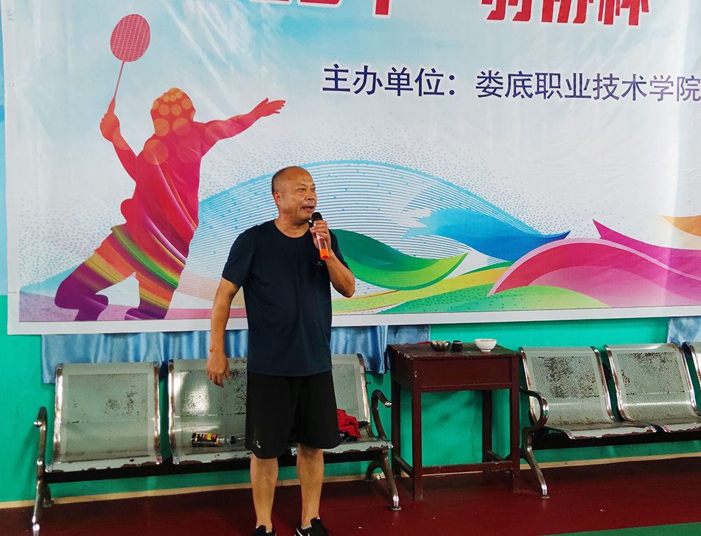 校教职工羽毛球协会会长黄敏雄主持开幕式,近百名协会会员分十个组参加了比赛。