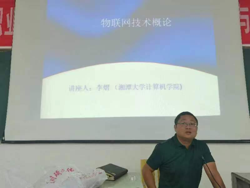 开班仪式由电子信息工程学院副院长刘理云主持,刘罗仁院长就学习目标、学习纪律做了要求。本次培训聘请了湘潭大学计算机学院.网络空间安全学院副院长、二级教授,博士生导师欧阳建权教授、湘潭大学计算机学院.网络空间学院教师李熠博士给我们的老师集中授课,主要讲授了大数据、计算相关知识、人工智能、物联网等相关知识。(刘理云)