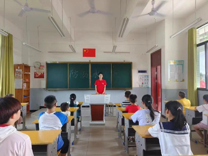 在同一天的下午,队员们还开展了暑期防溺水和人身安全教育主题活动。通过讲解、游戏和模拟演练等形式,队员们向孩子们普及了防溺水的知识和安全意识,指导他们如何正确应对紧急情况,提高自身的安全保护能力。