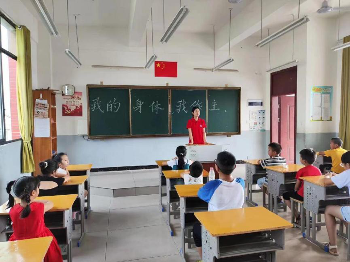 对于留守儿童的关爱也是活动的重要方面,8月2日,队员们来到桂长村田心小学,为留守儿童进行了一场关于性教育基本防范知识的讲解。通过生动的讲解和互动,向孩子们传授了如何正确认识身体的私处、预防侵害和性骚扰的方法等重要知识,帮助他们树立正确的性观念和自我保护意识。