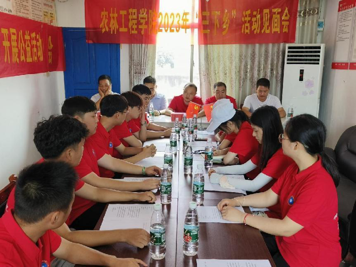 出发前,娄底职院农林工程学院在学院会议室进行了主题为“新时代、新青年”动员会,会议由带队老师曾旭主持,农林工程学院“三下乡”团队队长彭威汇报了活动方案,并分配了各个队员的工作任务。农林工程学院副院长王琦重点强调了要在“新时代、新青年”的背景下,把吃苦耐劳以及无私奉献的志愿者服务精融入到实践中,将所学的专业知识运用于实践,助力乡村建设。同时,注重实践,勤学善思,利用本次实践机会,发挥专业优势,在实践中检验所学、提升自我。副院长王琦还特别强调了队员们防溺水、防中暑和交通安全等问题。随后,在桂长村村部会议室举行了村委与“三下乡”团队的见面会