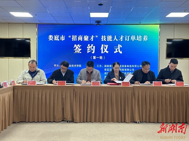 湖南日报·新湖南客户端11月11日讯(记者 邹娜妮 通讯员 廖金姣 蔡林峻)11月10日下午,娄底市召开“招商聚才”技能人才订单培养政校企对接会议,推动人才链与产业链精准对接,为娄底高质量发展争先创优提供坚实的技能人才支撑。现场,多家即将投产的企业提出用工诉求,娄底职业技术学院、娄底技师学院等专科学校踊跃“接单”。