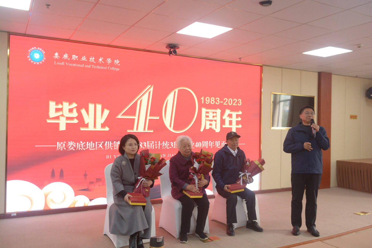 芳华四十载,归来仍少年。10月18日,原娄底地区供销学校83届计统3班毕业四十周年见面会在综合楼二楼视频会议室举行。学校党委委员、副校长欧芳,校友办负责人及工作人员出席了见面会。