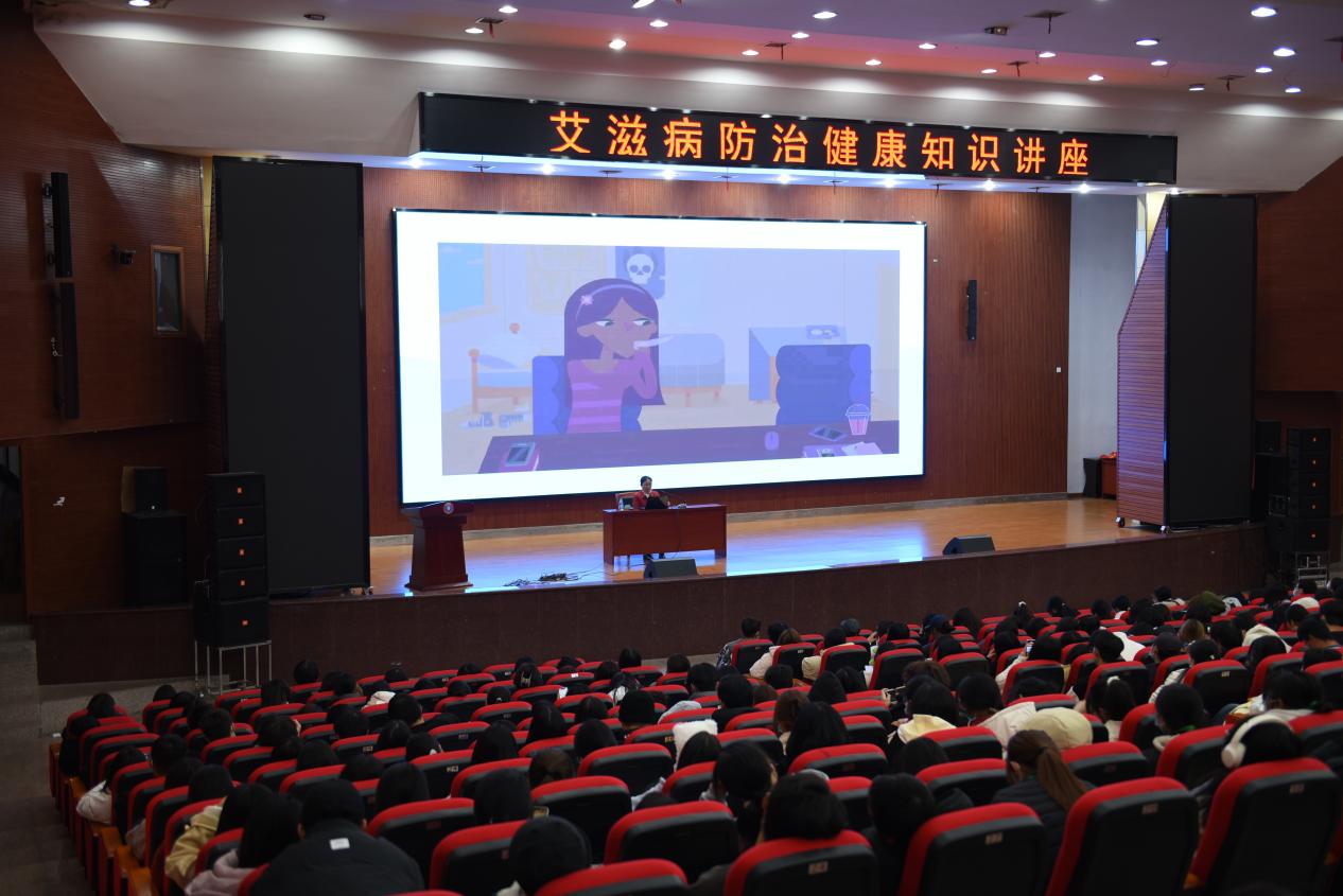 11月30日下午,学工处邀请了中国性学会青少年性教育专业委员会委员、中国生命关怀协会理事、娄底市计生协会优生优育和生殖健康专家库专家李翠华以“珍爱生命,携手抗艾”为主题的防艾健康知识讲座在学术报告厅举行。讲座由学工处副处长邱玉贵主持。讲座上李翠华老师介绍了艾滋病的科普知识以及预防艾滋病的有效途径,并通过生动有趣的方式让学生充分认识和了解传播艾滋病的高危行为。她特别强调防艾最重要的是自尊、自爱、自信、自重、自强,养成良好的生活习惯,洁身自好,恪守性道德,多点矜持,少些随便,思想开明,行为保守,保护好自己的生命安全。