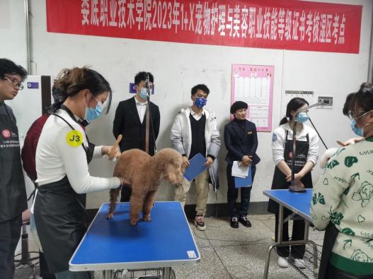 12 月 16 日至 17 日,农林工程学院组织了畜牧兽医、 动物医学专业 40 名学生参加了《1+X 宠物护理与美容》职业技 能等级证书考证。考试工作共分三个环节,12 月16日晚上进行了理论知识考试,17 日上午进行了实操考试。名将宠美教育科技(北京)有限公司两名考评员全程参与考评。