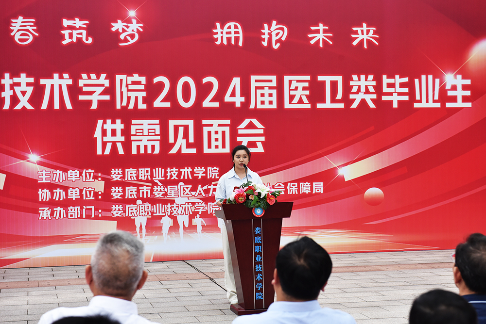 用人单位代表陈莉莉以及2024届毕业生代表谭青青先后进行了发言。张征澜宣布开幕。