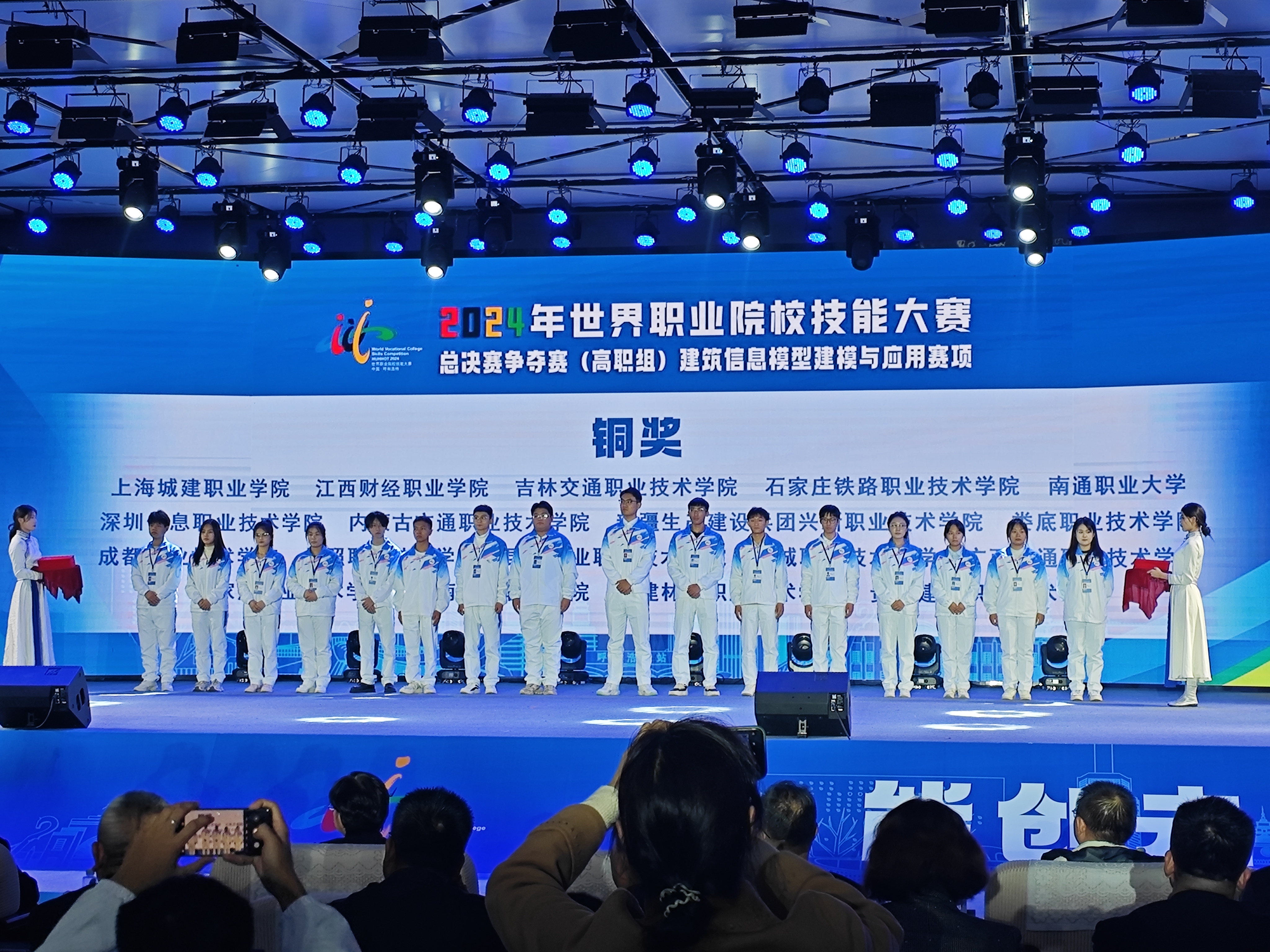 10月30日,2024年世界职业院校技能大赛总决赛争夺赛高职组土木建筑赛道“建筑信息模型建模与应用”赛项,经过激烈角逐,在内蒙古建筑职业技术学院落下帷幕,我校建筑工程学院严朝成、刘达栋两位老师指导的张玲玲、李微、甘元冬、余思錡团队脱颖而出获得铜奖。