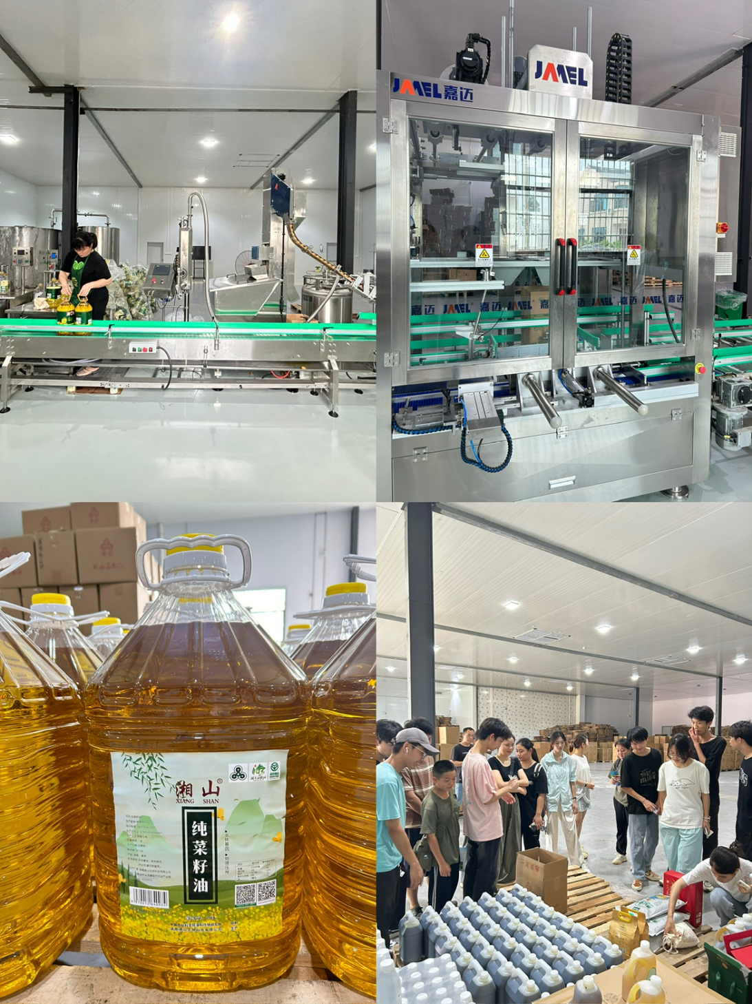 结束种植基地的实践后,在企业负责人引导下,师生一行参观了油茶炼油车间。结合眼前设备,老师们细致讲解油茶炼油的全流程。负责人紧随其后,针对每台设备的功能与操作要点进行详细解读。车间工人也热情参与,主动分享实际操作经验。随着参观逐步深入,同学们对油茶从原料到成品油的转化过程有了系统认知,不仅拓宽了专业视野,更深化了对农业科技产业链的理解。