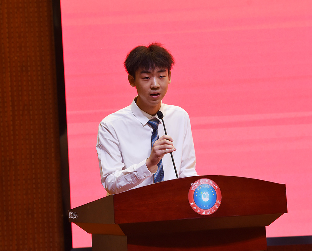 机电工程学院袁俊同学作为毕业生代表发言,深情回顾了三年求学时光。