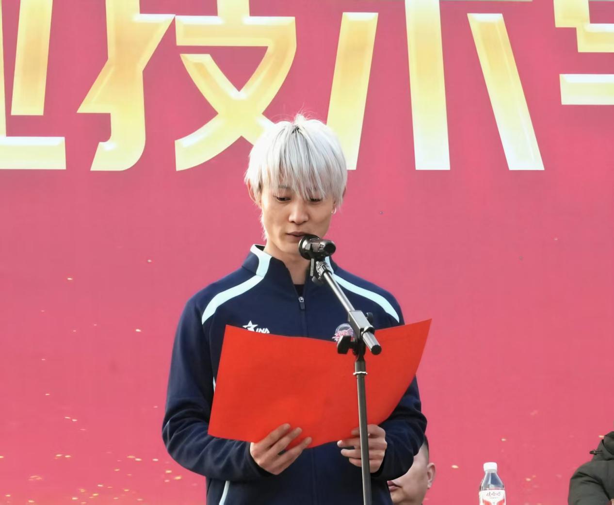 “湘超”娄底代表队球员、文化传播学院学生孙琦作为获奖学生代表发言,分享了竞技感悟与青春担当。