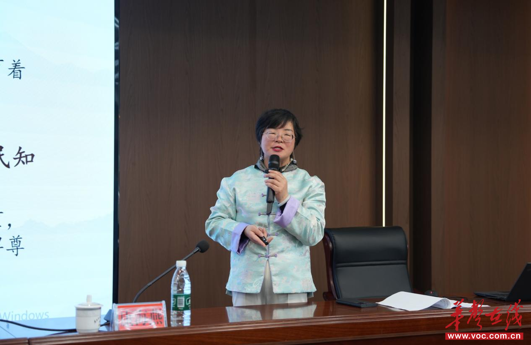 会议第二阶段,该校优秀校友、中国家庭教育学会宣教委员会副理事长、知名作家康海燕女士应邀作题为“女性成长与家风家教”的专题讲座。康海燕结合自身丰富的奋斗经历与深耕领域的研究成果,从“与时俱进、深耕自我”“学高为师、身正为范”“注重家风、治家有方”及“探索家教社协同”四个维度,生动阐释了新时代女性实现自我成长的路径方法,以及如何平衡家庭责任与事业发展,同时分享了家风家教建设的实践经验。讲座内容贴近生活、内涵丰富,引发了在场女职工的强烈共鸣,为大家带来了深刻的思想启迪和实用的成长指引。