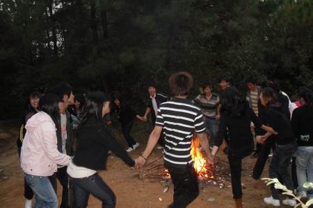11月5日暖暖的阳光洒满大地,是野炊的好天气,09园林班的同学们兴高采烈的向珠山公园出发了。 到达目的地后同学们一起动手开始准备自己的美味菜肴,虽然都说我们90后比较娇惯但是看同学们切菜、炒菜的样子还是有模有样的。之后大家一起分享丰盛的晚餐。6点是最让人兴奋的篝火晚会。大家手拉手围成一个圈,一起跳一起唱,歌声在树林里回荡,火光映着每一张笑脸,周围的一切都是快乐的。 天色晚了,将这份快乐的记忆打包放在脑海里珍藏。大家唱着《明天会更好》回校了。加油!09园林班的同学们,我们的明天会更好! (李小玉) ![]() 精心准备 ![]() 丰盛的晚餐 ![]() 篝火晚会 | |