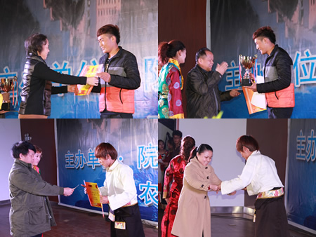 晚会上,李文莲书记、周意坚副院长、曾国基主席和欧芳书记分别为在民族文化传播协会、农林系举办的第二届“雪莲杯”足球比赛中获得前三名和优秀球员的球队和球员颁发了奖状和奖金。
