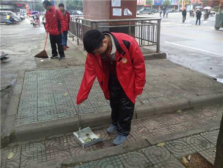 志愿者在打扫卫生