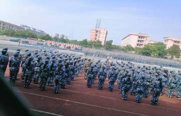 军训只是大学生活的一个开始,一段小插曲,但是,军训中学会的东西将会使他们终身受用。军训不单是为了提高自身的身体素质,在这期间也不仅仅是学到团体意识及纪律意识。 曾经无意中听到一个大一的新生说:挺喜欢萍水相逢这个词儿,因为一个人总会相遇什么,错过什么。军训,构成了属于他们和青春的一段回忆,编成他们生命中的一段小插曲。在未来的半个月内,时光会给这一群年轻人留下那深于海的烙印这挥之不去的烙印即将在每一个充满青春活力的生命绽放出光彩。