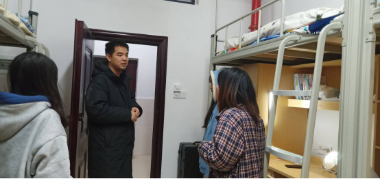 12月7日晚上,由学工副院长王琦带领各二级学院辅导员分组深入学生宿舍,对学生晚间在宿舍的学习、生活情况进行了巡视,并对学生宿舍的用电、防火、防盗等安全工作进行了重点检查。