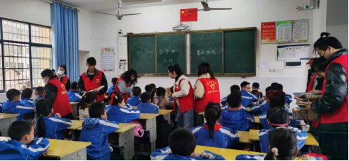 募得图书后,为了能尽快将书本送到花山中心实验小学,团总支负责人立马和学校老师取得联系,最后双方商定于3月18日周四下午2点进行图书捐赠。当天,各个参与班级人员把书籍送至捐赠地点。到达目的地后,团总支负责人刘健作为代表首先介绍了此次活动的内容和目的,现场与孩子们互动频频,一本本书籍都向我们展示着大家对花山实验小学孩子们的这份友爱之心、手足之情朴实而真挚,就像春雨点滴,汇聚成广阔的知识海洋。