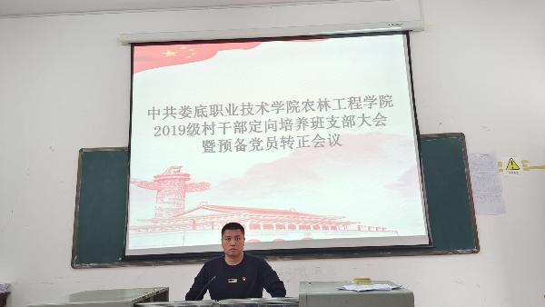 2022年5月27日,我院2019级村干部定向培养班党支部于新培楼327课室召开该专业2019级第一批预备党员转正会议,讨论关于刘凯豪、刘俊君等43名同志申请转为中共正式党员的问题。出席本次大会的有农林工程学院院长禹华芳、党总支书记王冬青、学工副院长王琦、支部书记谭京瑚,以及支部17名正式党员、43名预备党员。