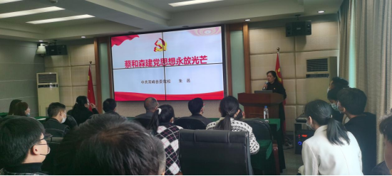 双峰县委党校对外培训部部长,党建讲师,入选湖南省党性教育师资库的朱邑老师以“蔡和森建党思想永放光芒”为题,从蔡和森建党思想的发展历程;蔡和森建党思想的基本内涵;蔡和森建党思想的当代价值三个部分讲述蔡和森同志的革命功勋,给全体党员干部上了一堂精彩的党课。