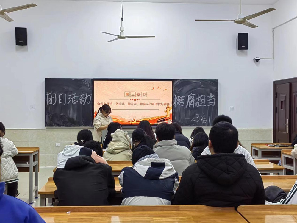 为加强青年的工作能力,学习对青年一代的殷切希望和要求,激发强国有我的青春激情,争做新时代好青年的重要思想,2023年12月14号晚,23级畜牧1班于主教楼105开展了“挺膺担当”主题班会,该班会由团支书李宁同学主讲。