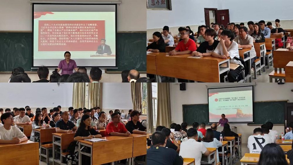 2024年6月26日下午4:30分,娄底职业技术学院农林工程学院学工党支部在主教学楼108教室召开“一月一课一片一实践”主题党日活动。参与此次活动的除了学工支部党员,还有67名毕业生党员。此次活动旨在进一步强化支部党员及毕业生党员的纪律意识,确保毕业生党员在即将踏上社会新征程时,能够始终牢记党的纪律要求,坚定理想信念,提升党性修养,做到忠诚干净担当。
