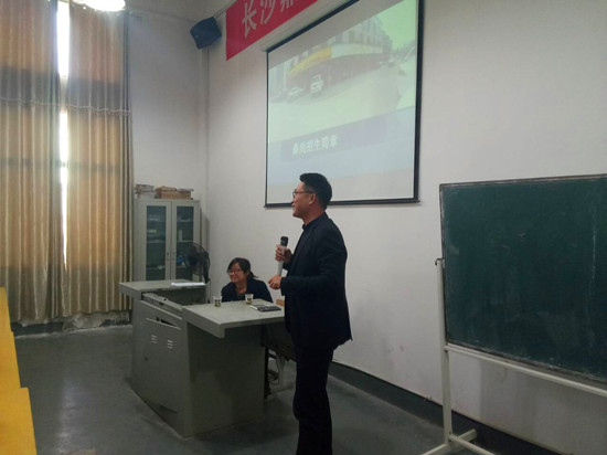 在这个毕业的季节,汽车学院为解决应届毕业生面对就业问题,缓解学生们的就业压力,汽车学院于11月23日下午2点40分在汽车学院B栋102召开了长沙鼎尚汽车连锁机构专场招聘会,15级应届毕业生全体成员参加,长沙鼎尚汽车连锁机构合伙人苏丹主持此次招聘会。