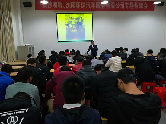 2017年11月27日下午四点十五,在这个毕业招聘火热阶段,汽车学院再一次迎来湖南四家实力企业的专场招聘会,他们分别是长沙明敏汽车服务有限公司,浏阳环球汽车服务有限公司,株洲野马汽车服务有限公司,湖南爱康运动有限公司;本次招聘宣讲在汽车学院B103举行,我院学生积极参与本次招聘会。
