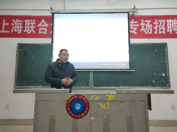 2018年12月16日8点,上海联合大众第五分厂专场招聘会在主教楼402召开,本次会议由上海联合大众第五分厂人事部代表刘亮主持,参加会议的是16级所有应届毕业生。
