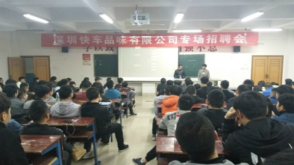 大会开始,首先由来自快车品味公司何乐向大家介绍了公司的基本情况。公司主要做汽车后市场高端养护,有专业化的经营技术团队,拥有高质量的服务特色以及专业的施工流程,多媒体运营中心。随后董事长胡伟就自己的人生经历为例,向就业实习生讲述了如何根据自身的条件能力去选择一份适合自己的工作并在场解答了大家对公司的疑问。