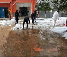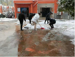 在学生会的组织下义务劳动清除积雪,志愿者顶风冒雪,不畏严寒,挥铁锹、扫帚,雪中工作在长达一个多小时,终于把被覆盖十四栋宿舍楼下路上的积雪清理干净了给其他同学们清理出一个安全方便的道路。