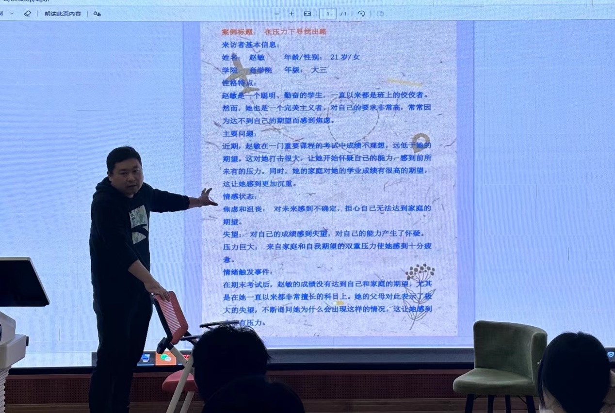 选手现场抽取案例(案例由心教中心提供)案例覆盖不同类型的校园心理困扰或场景。包括来访者的基本信息、性格特点、主要问题、情感状态、情绪触发事件。扮演角色:选手扮演朋辈辅导者,主持人根据案例中的人格特征扮演来访者,以增加情景的真实性。双方进行10分钟左右的谈话。技能展示:选手展示倾听、提问、反馈、干预等朋辈辅导技能。
