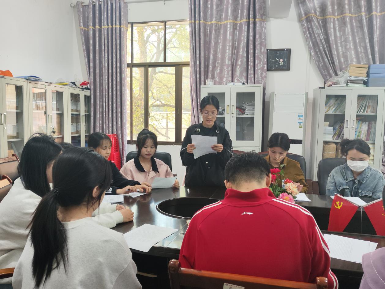 大会第一项,谢花萍院长介绍此次会议主要围绕两个重点展开。一为讨论吸收资丽榕等7名入党积极分子为第29期党员发展对象的问题;二是讨论确认第29期入党积极分子考察以及入党积极分子培训事宣等问题。