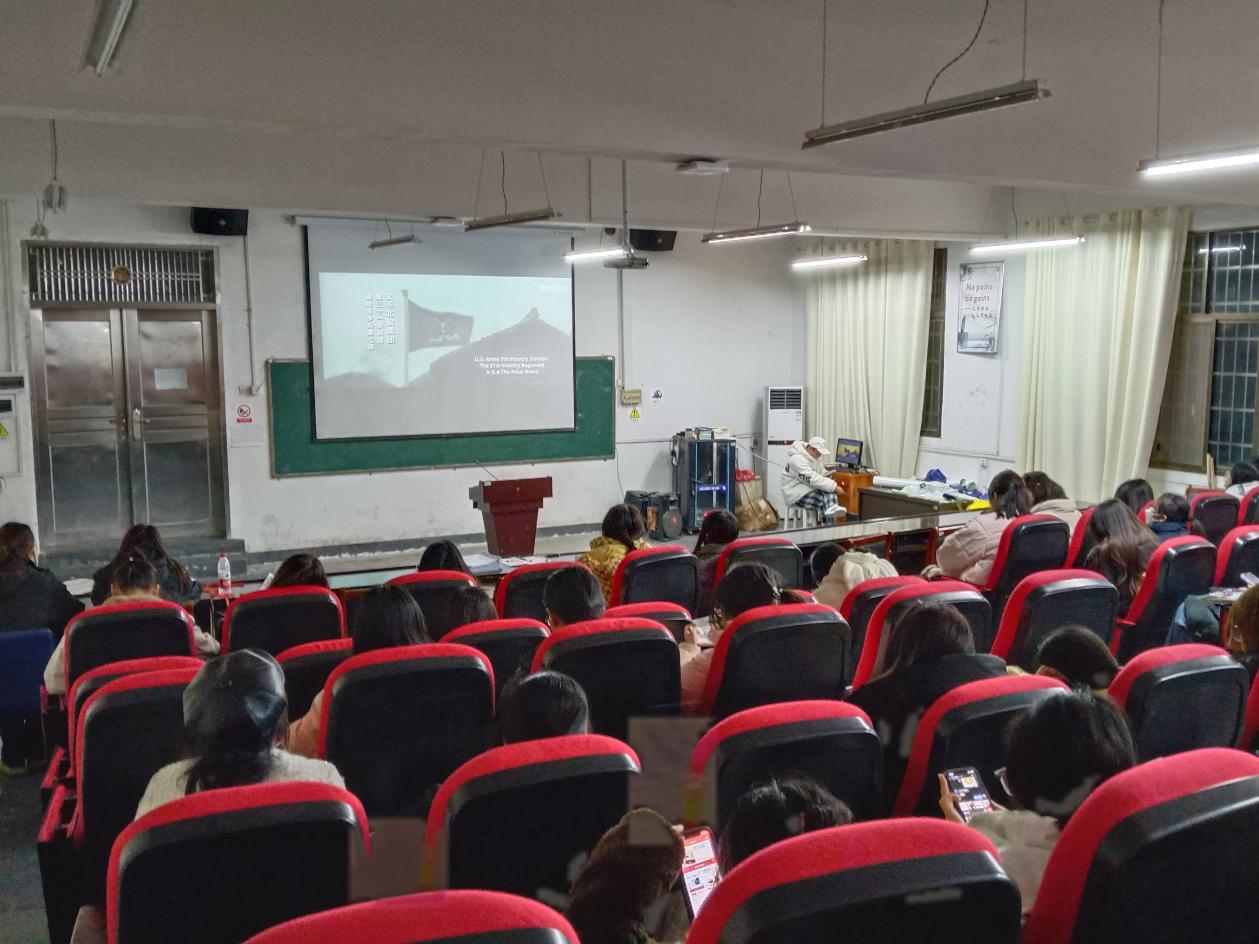 为弘扬爱国主义精神,纪念长津湖战役胜利74周年,增强我院学生的爱国主义情感和民族自豪感,文化传播学院于2024年12 月 24 日晚18:30组织我院学生在北科楼101观看了电影《长津湖》。