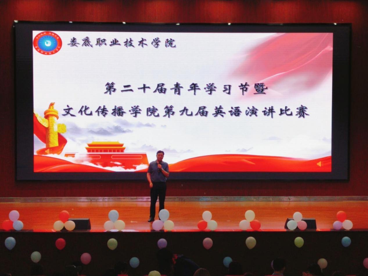 大赛正式开始前,刘书记上台致辞,他首先表达了对参与此次比赛的老师和同学表示感谢,并对通过初赛、复赛最后进入决赛的同学表示肯定。刘书记还提到英语不仅是交流工具,更是思维方式和文化的载体。本次比赛旨在为同学们提供展示自我的舞台,希望大家以语言为桥梁,传递中国青年的思考与担当。最后刘书记预祝本次英语演讲比赛圆满成功!