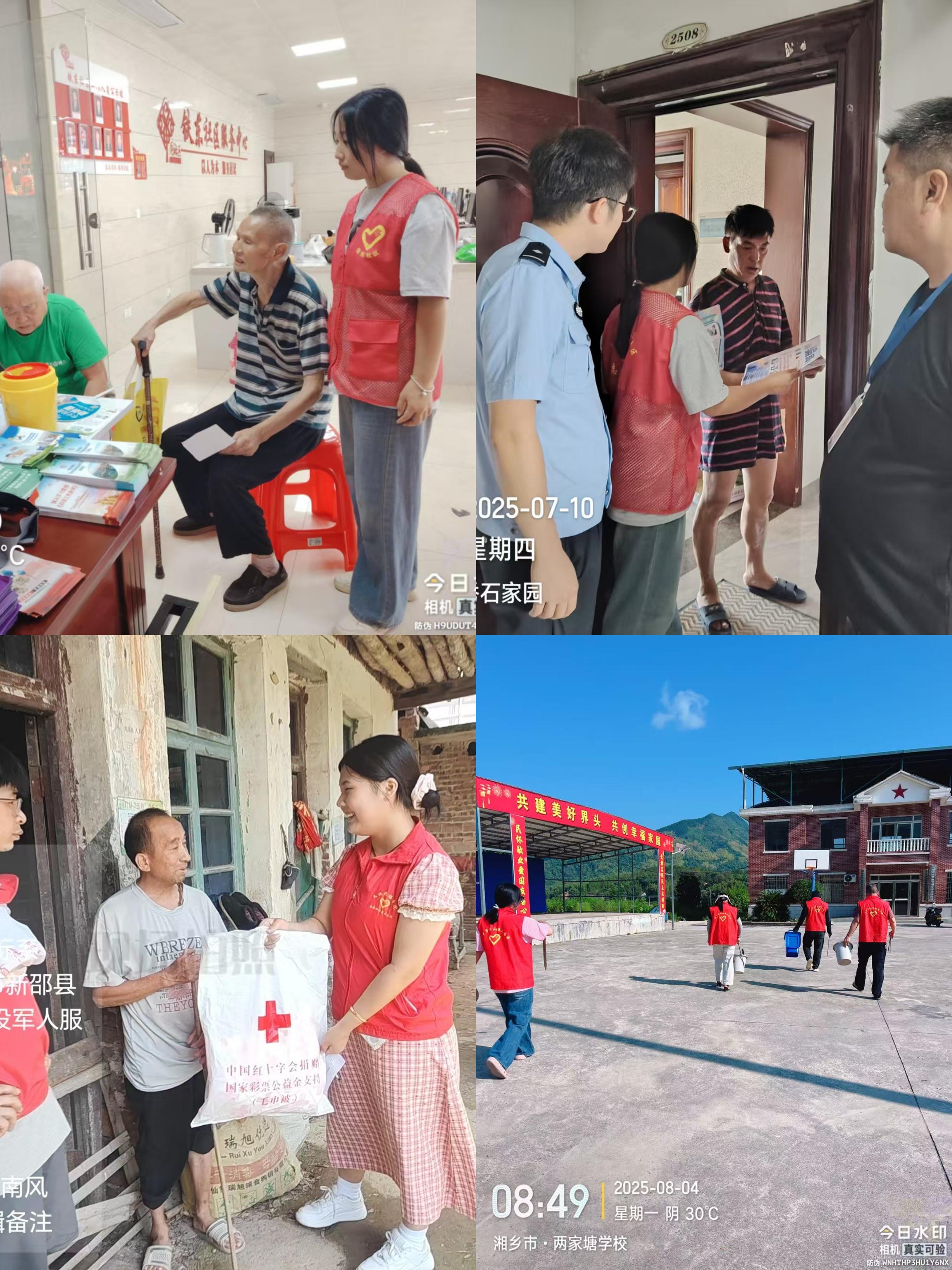在娄底市娄星区秀石家园,志愿者们协助工作人员整理居民资料150余份,发放“乡村振兴政策宣传册”80余份,倾听老人讲述“过去的故事”;在邵阳市新邵县巨口铺镇高升村退役军人服务站,志愿者们参与“敬老助残”活动,上门为独居老人打扫房间、整理衣物,陪残疾居民聊家常,帮他们解决“买菜难”“取快递”等小事;在湘乡市两家塘学校,志愿者们开展“环境卫生整治”行动,手持扫帚、垃圾袋清理卫生死角6处,捡垃圾20余袋,还向居民讲解垃圾分类知识,发放“垃圾分类指南”100余份,推动社区环境“旧貌换新颜”。