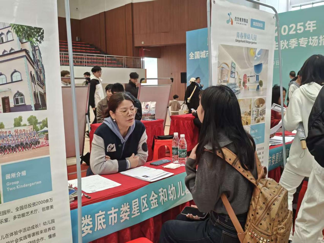 招聘会现场人头攒动,秩序井然。来自娄底本地的用人单位展位前,毕业生们手持精心准备的简历,主动与企业招聘负责人沟通交流。婴幼儿托育服务与管理、学前教育专业的学子们,围绕幼儿园教学、幼儿照护、托育机构等展开咨询,详细了解用人单位的师资培养体系、薪资福利、职业发展路径等核心信息。应用英语(小学教育方向)专业的毕业生则将目标锁定在小学英语教学、英语培训机构教学教研等岗位。他们与娄底本地多所小学、连锁英语教育机构的招聘代表深入沟通。应用英语(国际贸易方向)的毕业生们聚焦外贸业务员、跨境电商运营、商务翻译等岗位,与参会的外贸公司招聘负责人深入洽谈。同时部分企业招聘人员现场邀请部分学子参加后续面试。