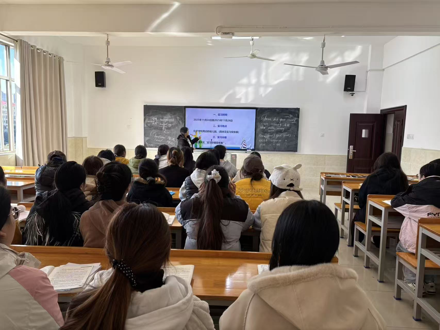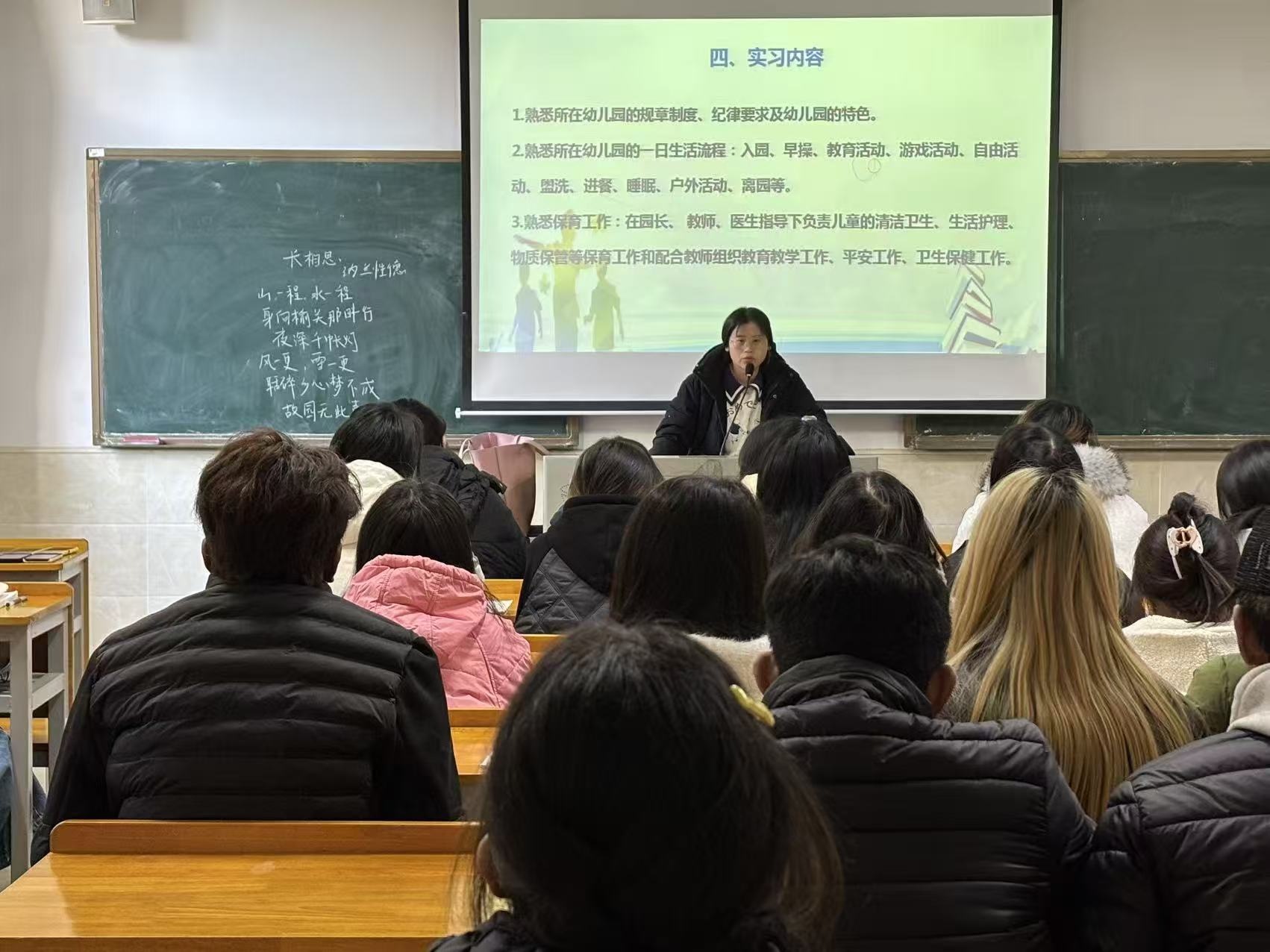 为进一步明确实习任务与要求,系统部署实习相关工作,文化传播学院于2025年11月16日在主教楼302组织召开2024级学前教育专业认识实习动员大会。会议由章威、黄静两位老师主讲,2024级学前教育专业全体学生参加。