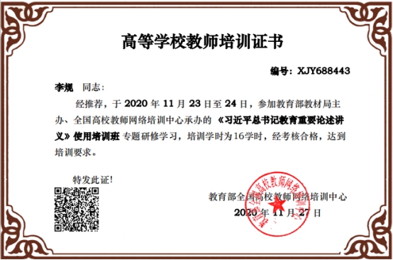 通过网络培训,66名专职辅导员参加了《讲义》培训考试,并合格。本次讲义培训对辅导员们深刻领会习近平总书记关于教育的重要论述,把握新理念、新思想和新战略具有重大意义。