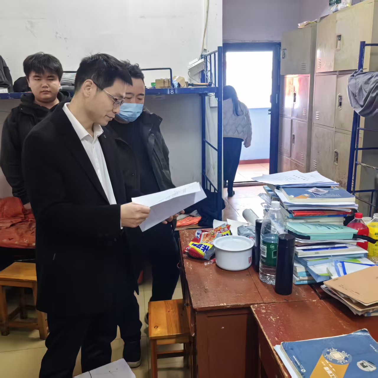 1月14日晚,校长谭峰亮前往学校“一站式”社区,下沉宿舍了解学生工作开展情况,同时亲切看望一线工作人员及在校学生。