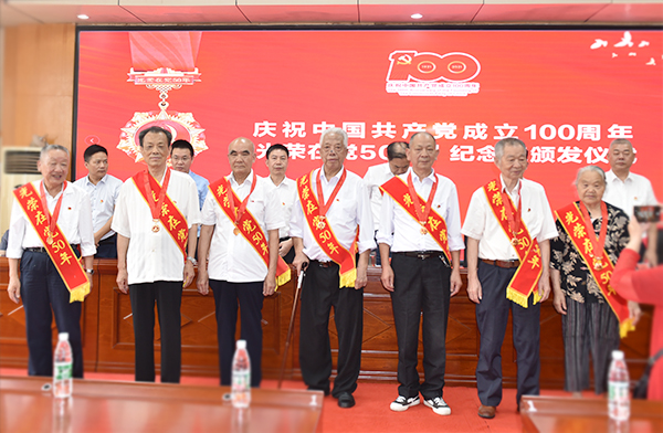 会上,全体校领导还为“光荣在党50年”老党员们颁发了纪念章。“光荣在党50年”纪念章颁发对象是党龄达到50周年、一贯表现良好的党员,我校有31名老党员同志获得了此项荣耀。
