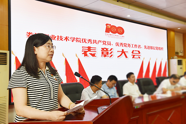 党委副书记王健龙宣读《中共娄底职业技术学院委员会关于表彰优秀共产党员、优秀党务工作者和先进基层党组织的决定》(简称《决定》)、《关于2020年度学校党建工作“示范工程”“先锋工程”先进单位和个人评选结果的表彰通报》,同时传达了中共湖南省委教育工委《关于公布全省高校党组织“对标争先”建设计划第二批项目评选结果的通知》。