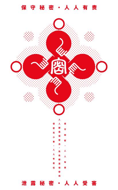 杨晓丹等老师的作品《共铸保密中国结》:该作品创意性地以“中国结”为视觉核心,将其绳线交织、环环相扣的结构,隐喻为每个公民都是保密防线上不可或缺的一环,传达出“万众一心,共铸安全”的核心理念。