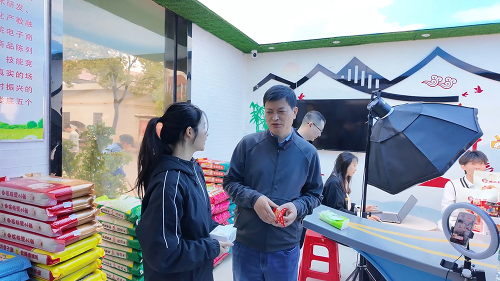 在随后的行程中,周和平重点参观了学校“乡村振兴示范馆直播实训基地”,深入了解了我校在直播电商等新业态人才培养方面的探索与实践。他表示,学校在直播电商领域的布局非常务实,培养的学生具备很强的实战能力。