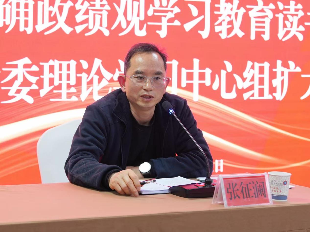 3月31日,我校在综合楼视频会议室举行树立和践行正确政绩观学习教育读书班暨党委理论学习中心组(扩大)学习。党委书记张征澜主持学习并作总结讲话。