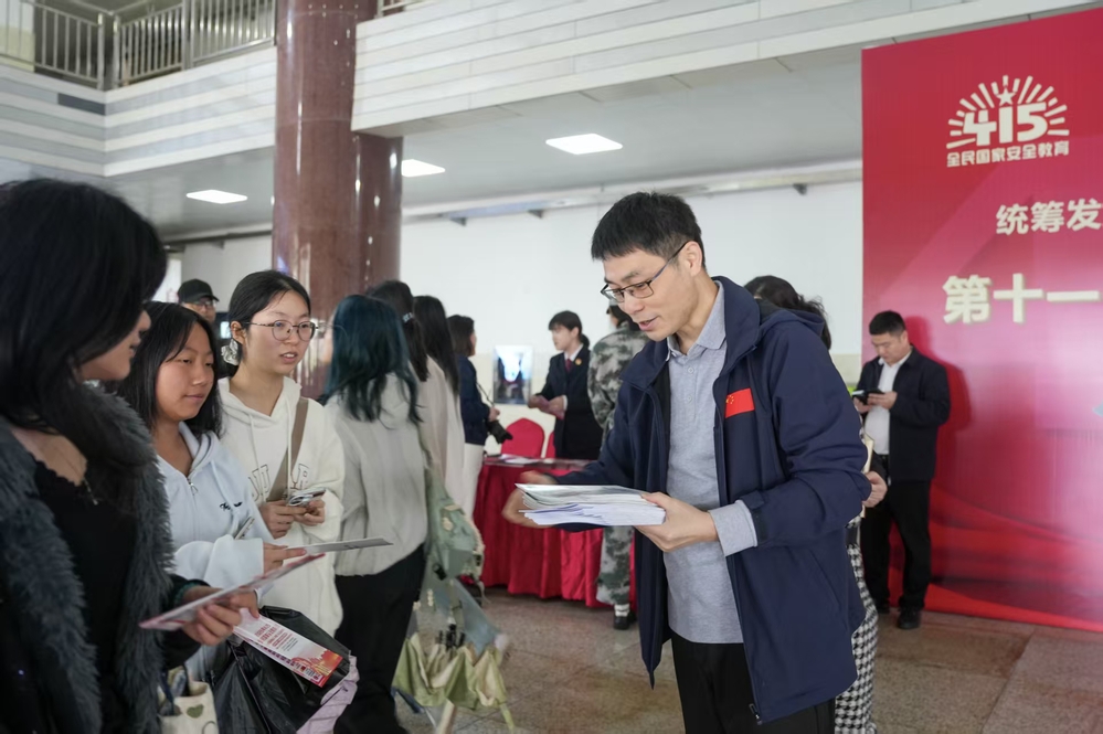 活动现场,主题鲜明、内容详实的国家安全宣传展板整齐排布,通过图文结合的形式,全面展示国家安全各领域核心知识、相关法律法规及典型安全案例,让师生直观了解国家安全相关内容。现场大屏幕循环播放国家安全宣传视频,借助生动形象的动画、真实鲜活的案例短片,以视听融合的宣传形式,将晦涩的国家安全知识变得通俗易懂,真正做到入脑入心。活动期间,现场工作人员与青年志愿者分工协作,向过往师生逐一发放国家安全宣传手册、普法宣传单等资料,面对面讲解国家安全相关知识,耐心引导师生认真学习阅读,叮嘱广大青年学生时刻保持警惕,不断提升安全防范意识与法治观念,自觉抵制各类危害国家安全的行为。参与师生热情高涨、主动学习,在互动交流与沉浸式学习中,深刻领会“国家安全无小事”的重要内涵,进一步牢固树立“国家安全人人有责、人人可为”的责任意识。