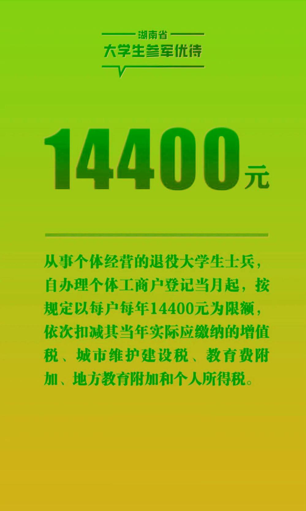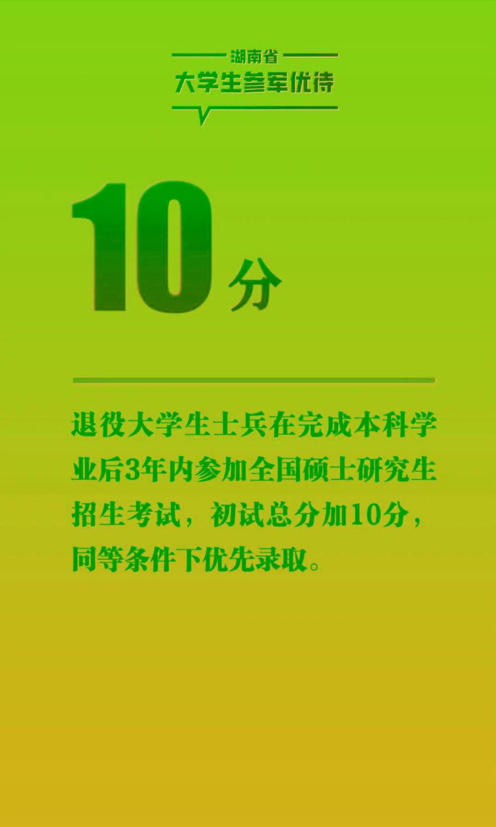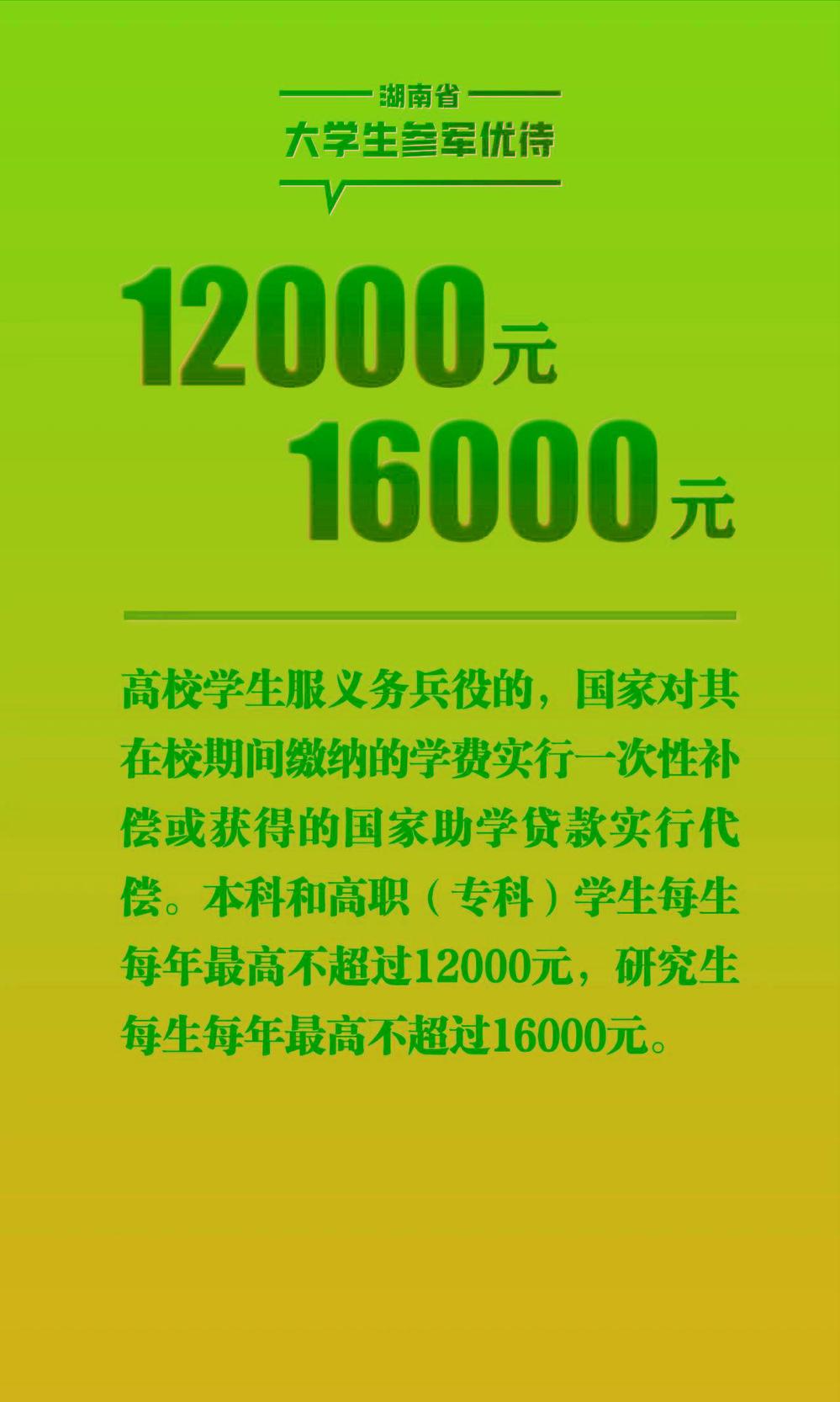 湖南省大学生参军优待政策