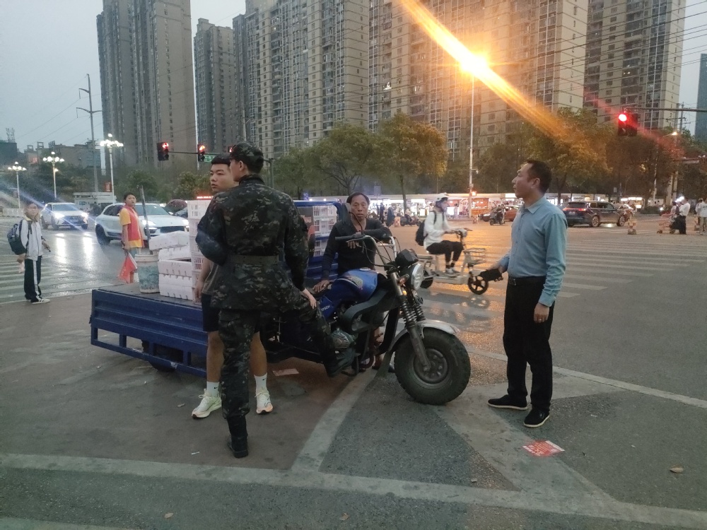 为维护校园周边秩序,娄底职业技术学院综合治理联合综合执法大队,于3月26日傍晚对校园外南大门流动摊贩开展整治行动。工作人员耐心沟通,规范管理,保障道路通畅与校园周边环境整洁 ,为师生营造良好的学习生活环境。