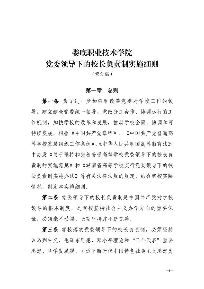 娄底职业技术学院党委领导下的院长负责制实施细则